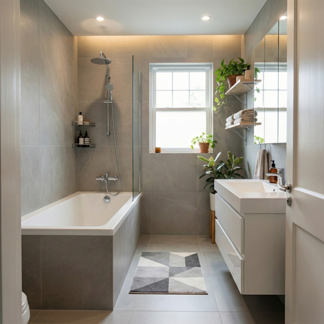 • 샤워 커튼/파티션: 샤워기 주변에 커튼이나 유리 파티션을 설치하여 물이 세면대나 변기 쪽으로 튀는 것을 원천 봉쇄해야 합니다. 이것이 건식 욕실의 90%를 결정합니다.