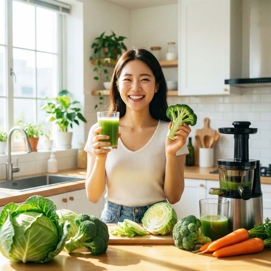 역류성 식도염 예방을 위해 밝은 주방에서 양배추를 손질하는 한국인 여성